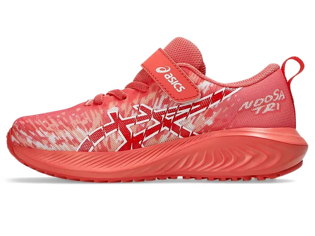 Denne skoen har en overdel i mesh for å øke luftstrømmen som bidrar til å holde føttene kjølige, og den livlige fargekombinasjonen er kombinert med en serie dristig «NOOSA»-grafikk. Designet inkluderer også et borrelåslukkesystem for en mer forsterket passform.