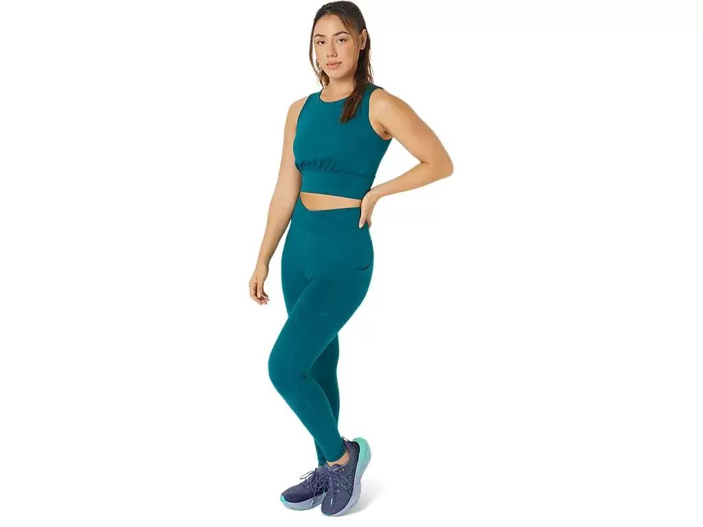 Denne tightsen har en høy linning og en kimono-inspirert kryssfold for forbedret stabilitet under treningsøktene.