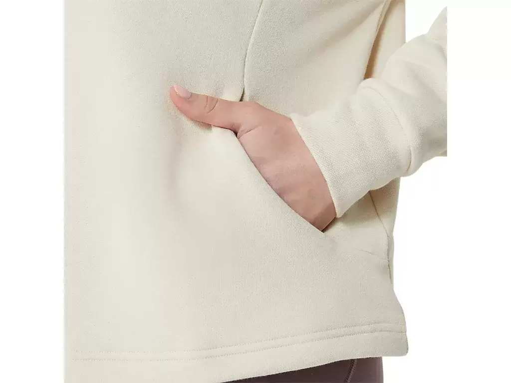 Den har en avslappet silhuett, et kort design for et stilig utseende og en kengurulomme foran. Den har også en elastisk snor i halsen for en justerbar passform som holder deg varm.