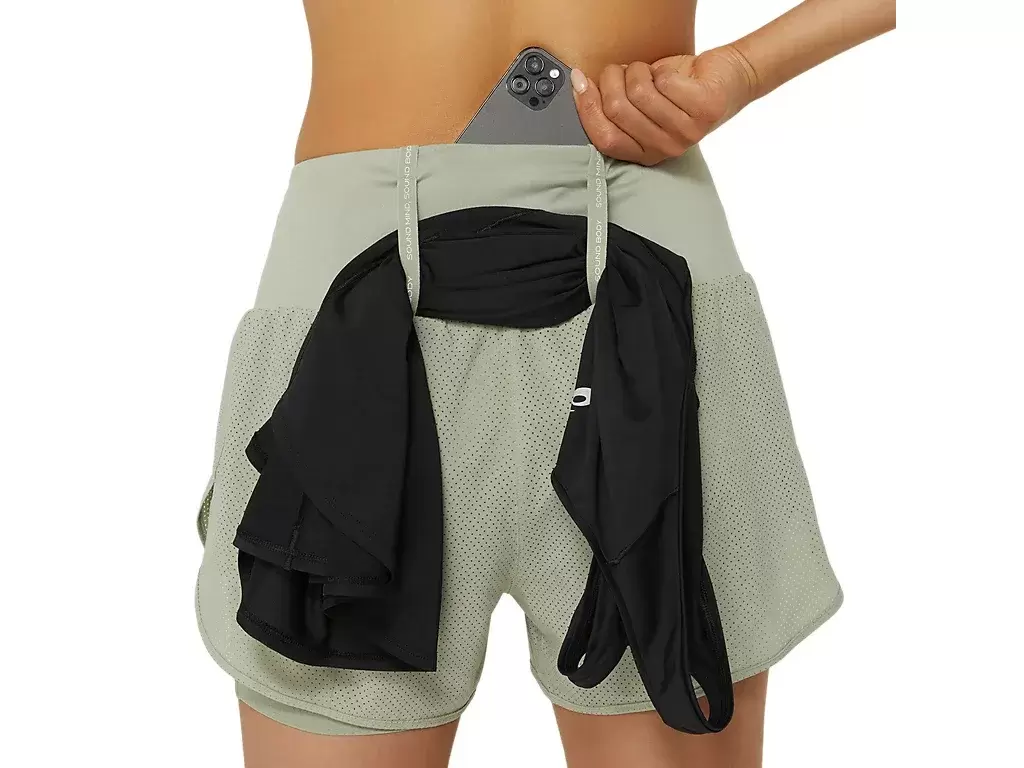 Denne shortsen har flere lett tilgjengelige oppbevaringsmuligheter, en integrert linning med 3 lommer og flere oppbevaringsmuligheter på sprinterbuksen. I tillegg er det et elastisk oppbevaringssystem med løkker for jakke, t-skjorte, håndkle eller andre nødvendige løpeutstyr.
