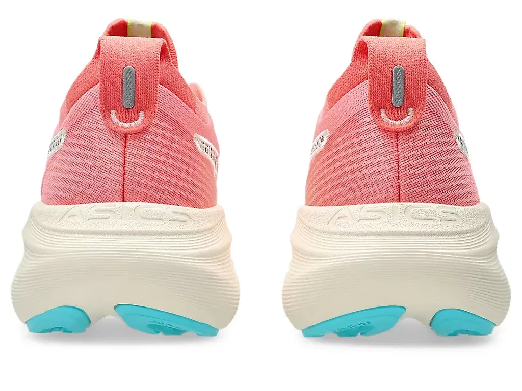 GEL-NIMBUS® 27 NATURE BATHING™ TR-skoens myke dempingsegenskaper gir deg følelsen av å lande på skyer. Dette designet er fornyet for å skape en mykere og jevnere løpeopplevelse. Fargekombinasjonen er inspirert av tropiske kystlandskapselementer, som bølger, drivved, steiner og skjell.