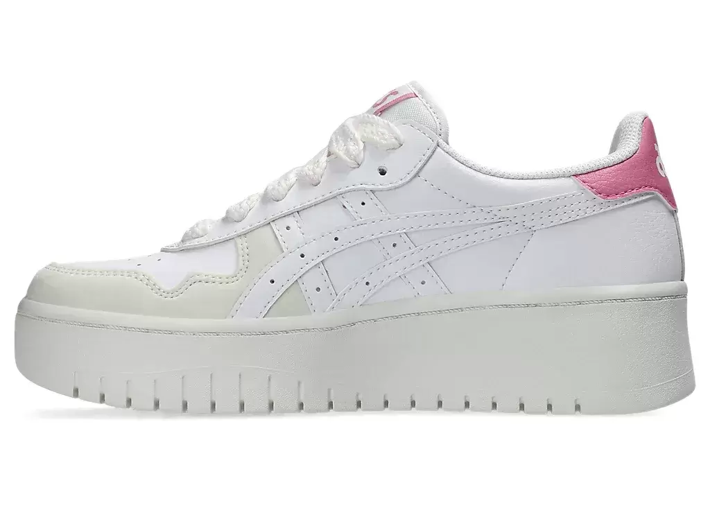 JAPAN S™ PF-skoene er basert på et av våre retro-kolleksjoner fra 1981. Denne eksklusive silhuetten for kvinner har blitt gjenskapt med nøytrale toner, mens den tradisjonelle mellomsålen har blitt erstattet med et plattformdesign for bedre demping. Denne klassiske stilen etterligner estetikken til en retro basketballsko, og er også kombinert med nostalgisk merkevarebygging, som ASICS®-stripene på sidepanelene og «ASICS»-bokstaver på hælen. JAPAN S™ PF-skoens vintage-basketballestetikk er kombinert med ikoniske banespesifikke detaljer som er inspirert av fottøy brukt på hardtre av basketballspillere på 80-tallet.