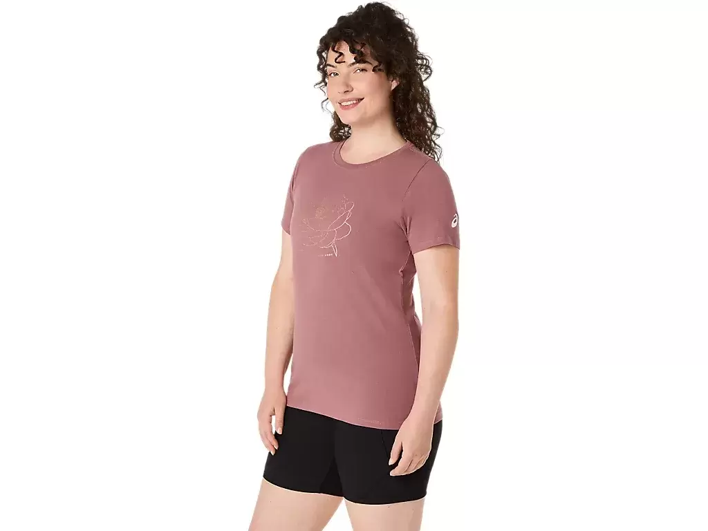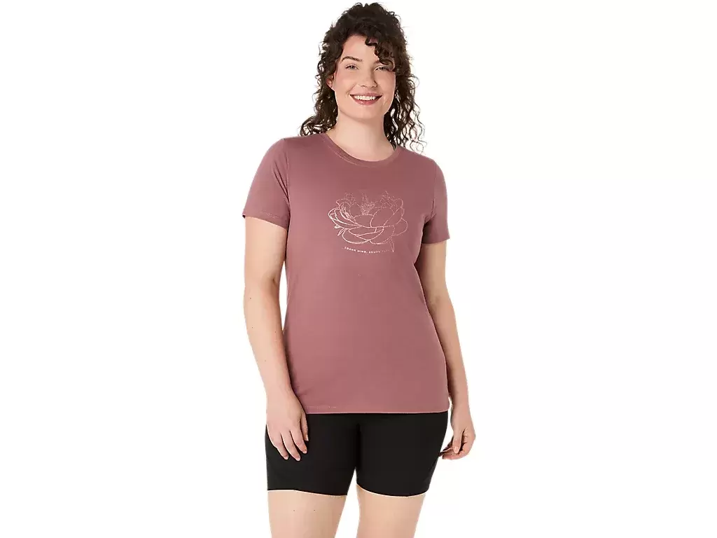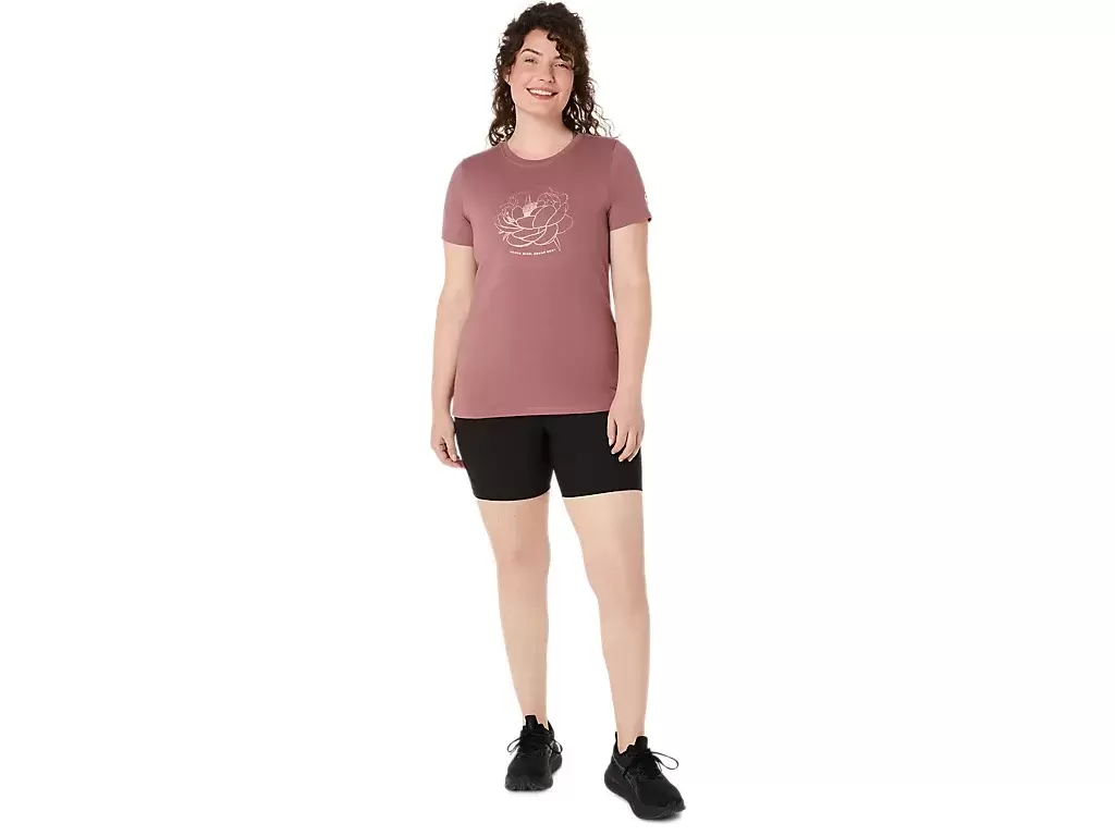 Denne komfortable strikkede t-skjorten med korte ermer er inspirert av peonblomsterløker