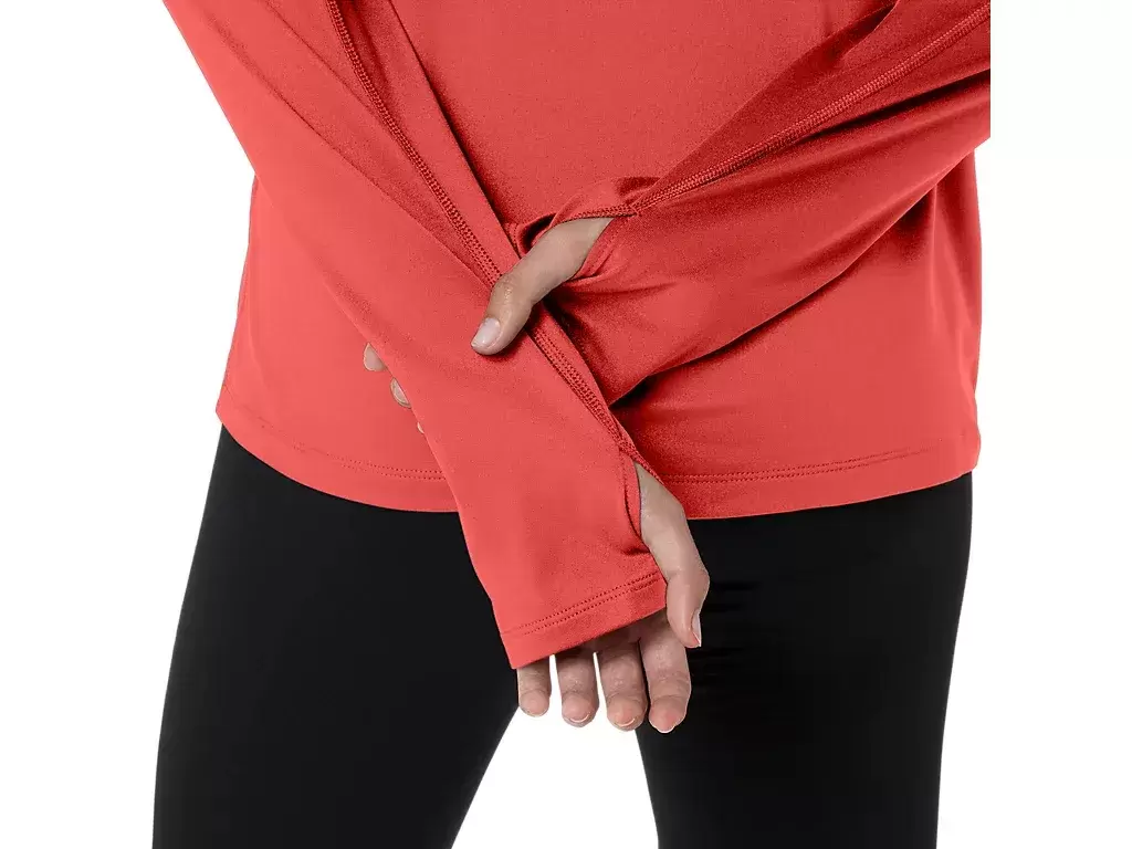 Ikke la været stoppe løpeturen din. Når temperaturene er lave, vinden hyler eller regnet ikke gir seg, trenger du denne funksjonelle vintertoppen med halv glidelås. Toppen er laget av børstet stoff for varme, og har også en høyere hals som beskytter mot vinden. I tillegg bidrar strategisk konstruerte detaljer, som hakebeskytteren, til å gi beskyttelse mot vind, tommelhullene hindrer at ermene glir opp, mens halvglidelåsen lar løperen åpne glidelåsen og få bedre ventilasjon. Denne toppen med halv glidelås har også reflekterende detaljer for å forbedre synligheten i dårlig lys.