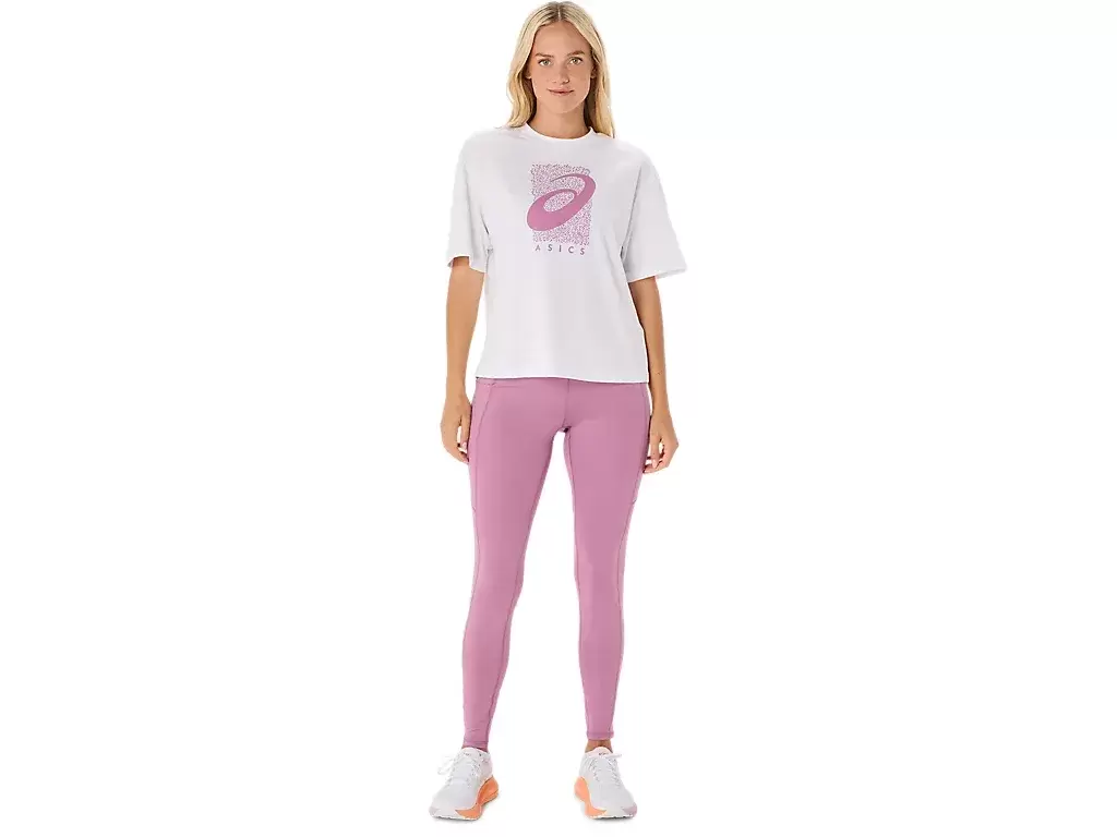 Toppen er også komplementert med en sesongbasert ASICS® Spiral-grafikk, en kort lengde, avslappet passform og sidesplitter for enkel bevegelse.