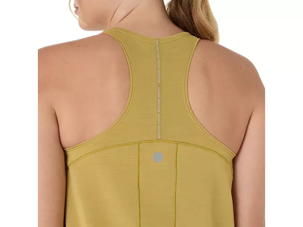 I tillegg bidrar det ultramyke strikkestoffet og racerback-designet til bedre komfort. Toppens sirkulære ryggdetaljer er inspirert av de japanske Enso-symbolene.