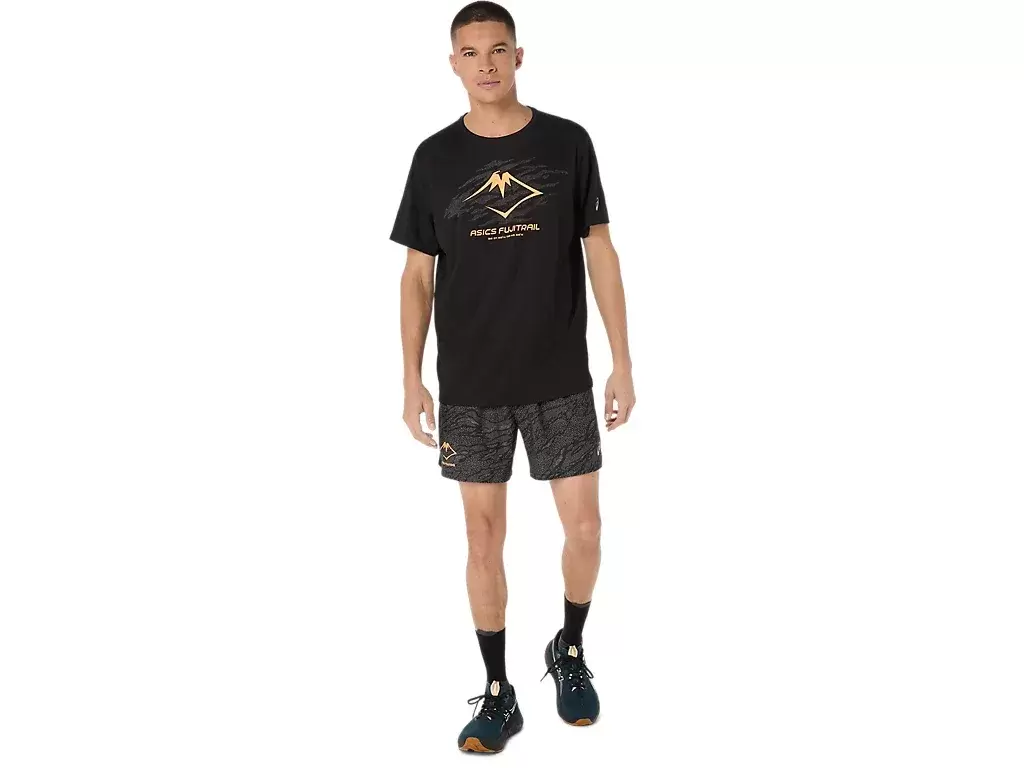 FUJITRAIL™ LOGO ALL OVER PRINT 5IN SHORT er inspirert av terrengløpeeventyr, og er et hverdagsprodukt for terrengløping.