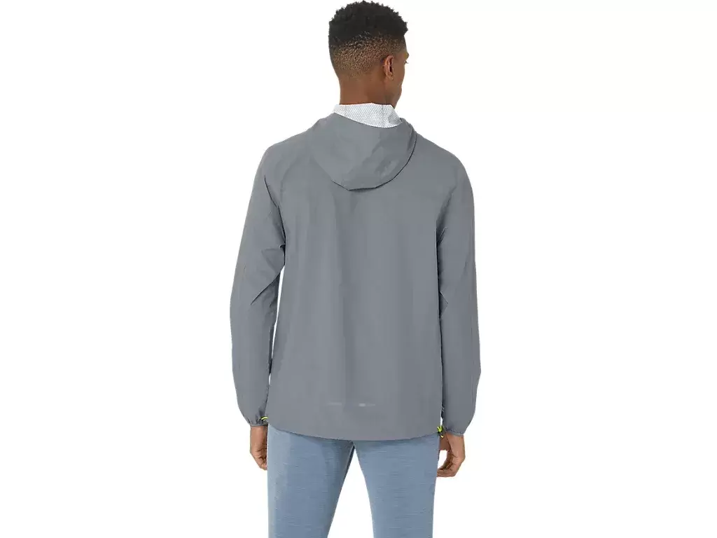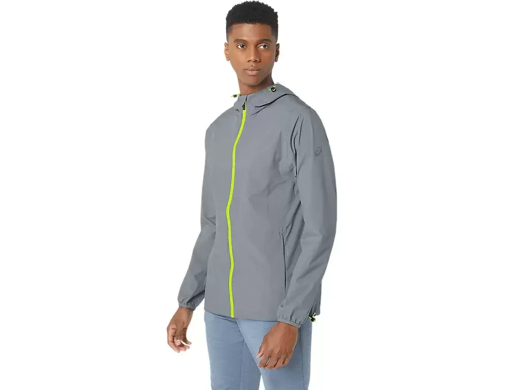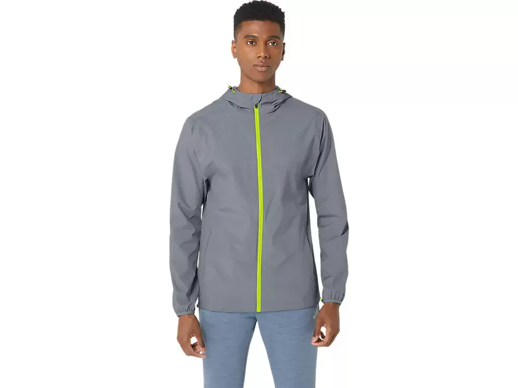 Denne jakken er designet for å holde deg tørr under løpetreningen. Den er laget av et mykt, elastisk vevd stoff som er vind- og vannavstøtende. Plagget har også to glidelåslommer foran for praktisk oppbevaring.