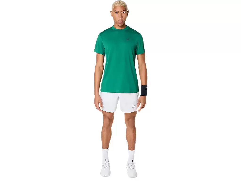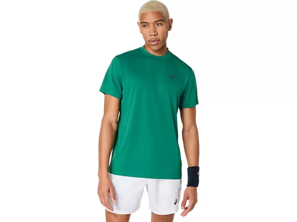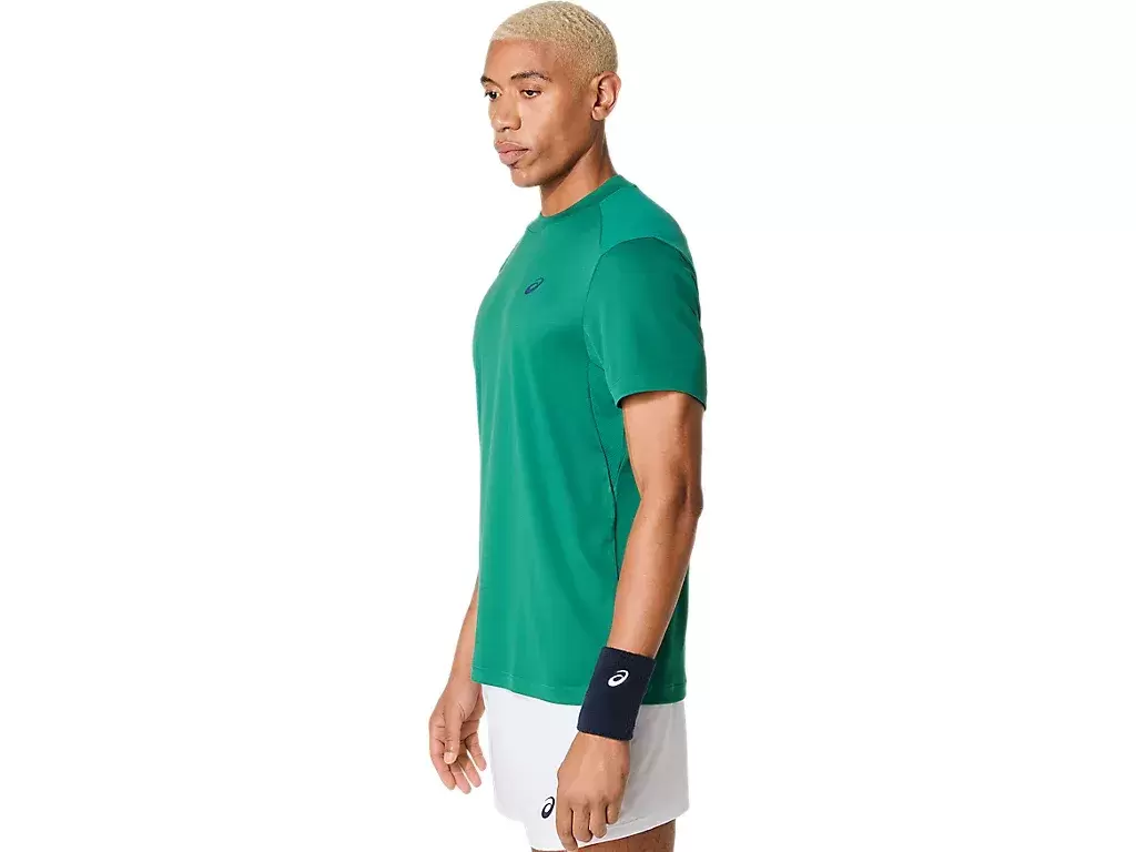 COURT SHORT SLEEVE TOP har et klassisk design som er tidløst for en rekke kamper og treningsøkter. Den er designet med et klassisk tennismateriale og håndterer fuktighet med sitt tørre og myke stoff for en komfortabel topp.