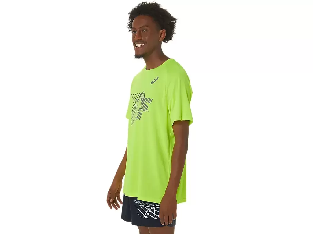 Denne kortermede toppen er funksjonell og holder deg komfortabel og tørr. Den har også et komfortabelt strikkestoff med skografikk foran.