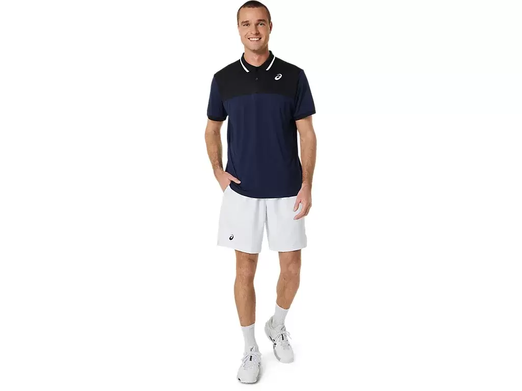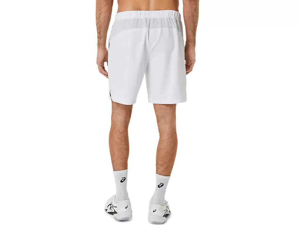 COURT 9IN SHORT har nettingpaneler langs linningen for å forbedre pusteevnen, mens det lette vevde stoffet forbedrer fuktighetskontrollegenskapene.