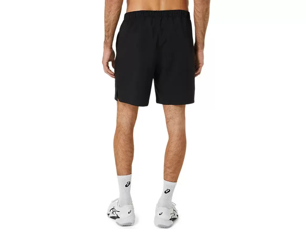 COURT 9IN SHORT har nettingpaneler langs linningen for å forbedre pusteevnen, mens det lette vevde stoffet forbedrer fuktighetskontrollegenskapene.